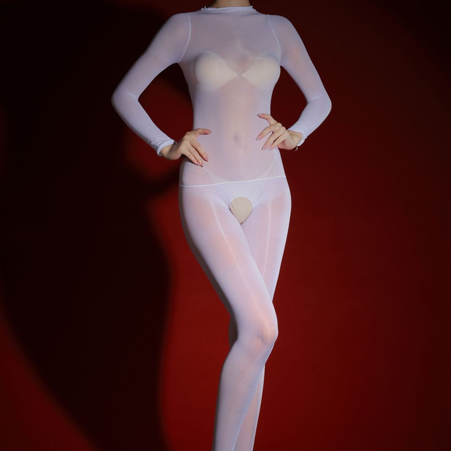 Mirror-like oil gloss that drips over every inch of you. This ultra-sleek. high-shine bodystocking clings from built-in gloves to toes. reflecting light and accentuating every dangerous curve while the open-crotch design keeps the night wide open for play.