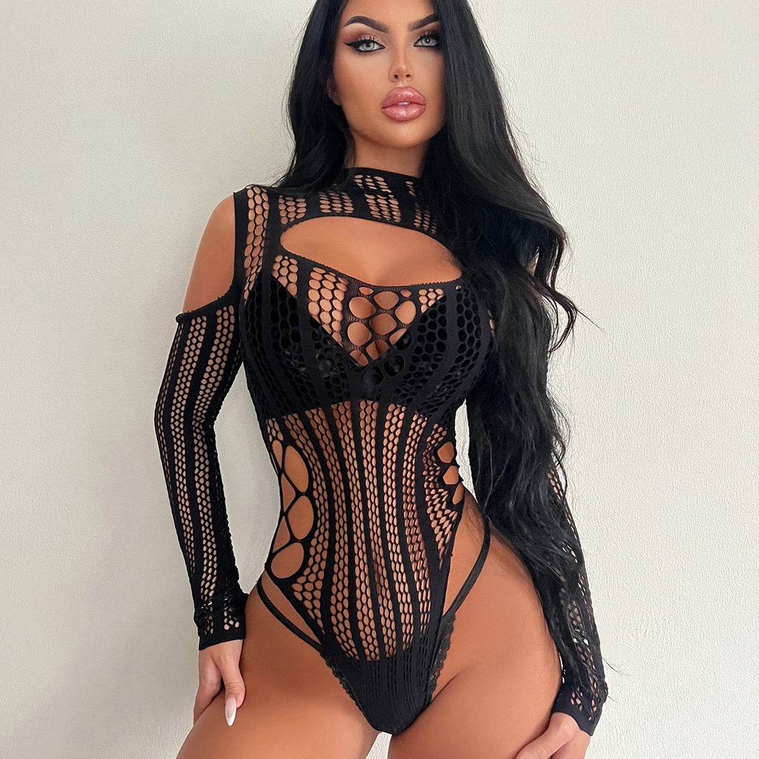 Cold-Shoulder Distressed Fishnet Teddy